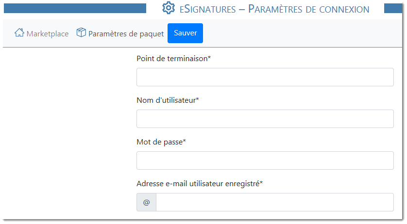 - Adresse électronique de l'utilisateur enregistré : l'initiateur de la signature. (account login)