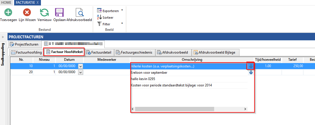 | Boekhoudrekening | Hier bepaalt u welke grootboekrekeningen gekozen moeten kunnen worden. |